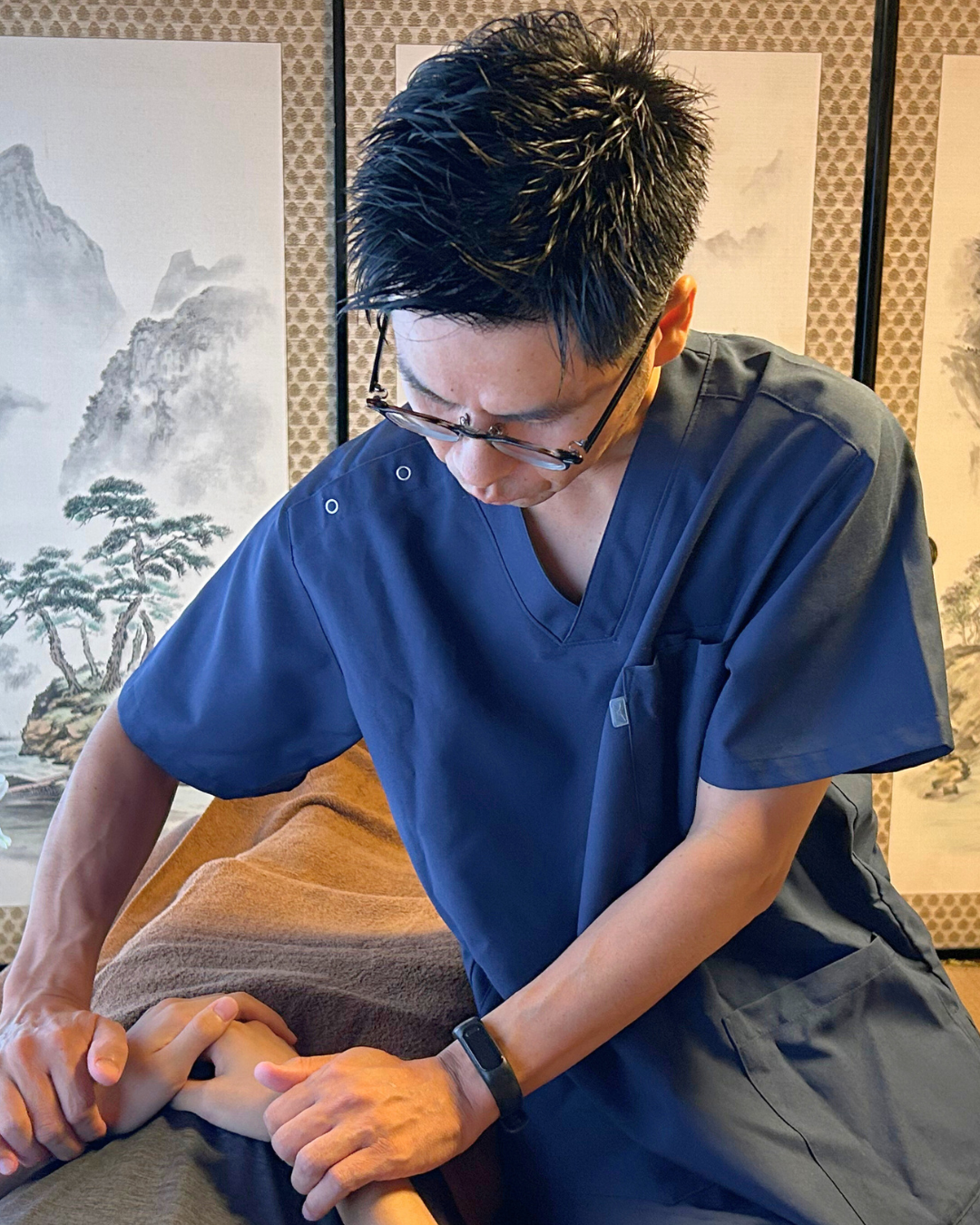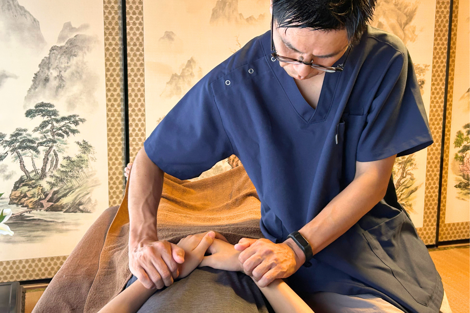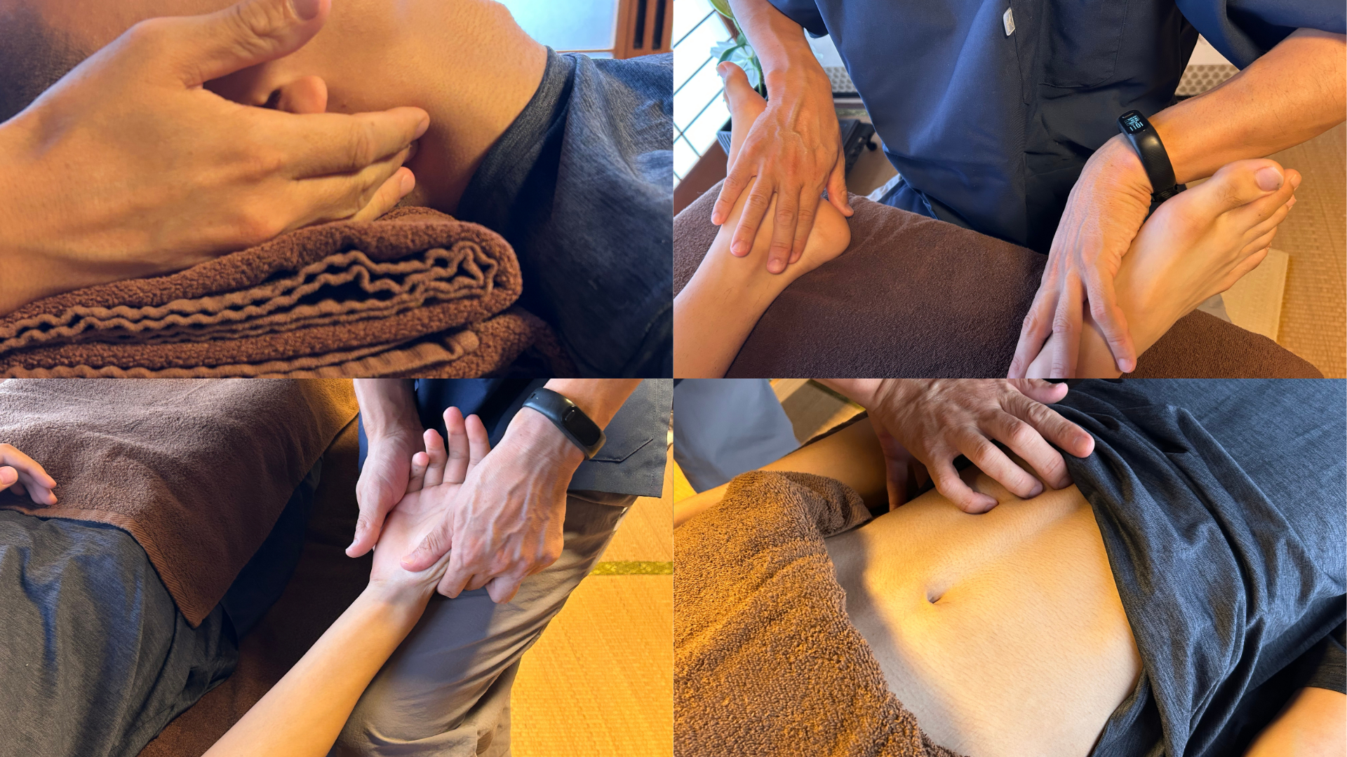 当院では、痛みや悩みの根本原因を見つけるたに、からだの声を聴く触診・脈診を丁寧に行っています。