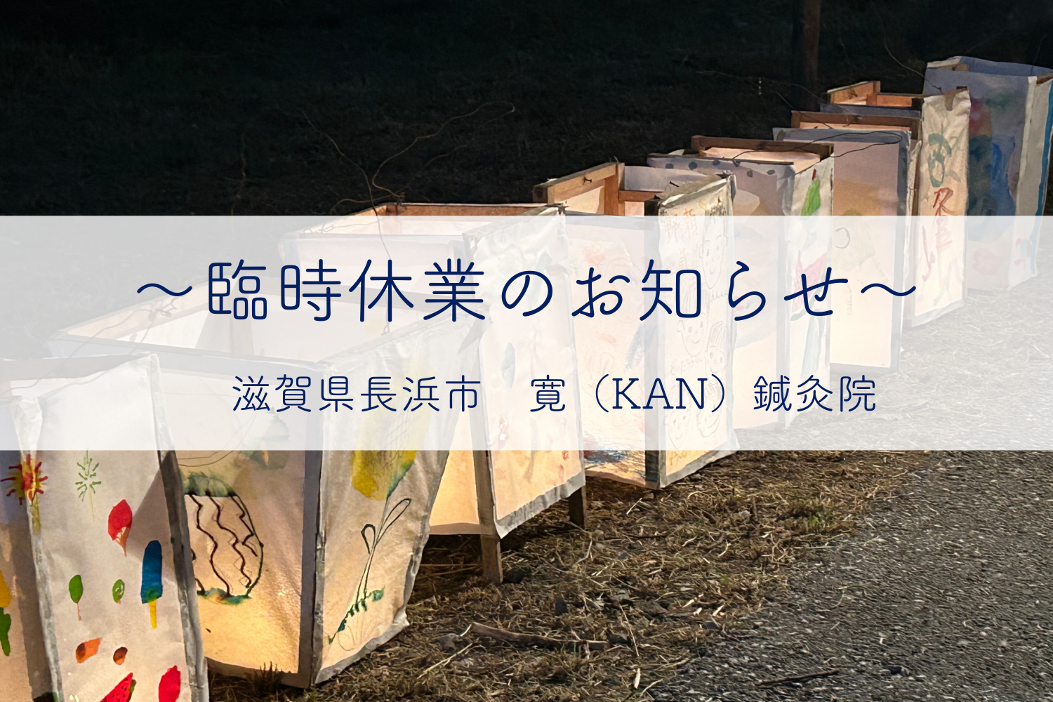 さて、当院は下記の日程で臨時休業とさせていただきます。この間、ご連絡は可能ですが、施術はお休みになりますのでご了承ください。